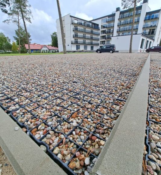 Straßen- und Rasengitter für den Bau ökologischer Oberflächen.