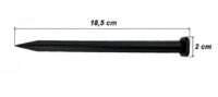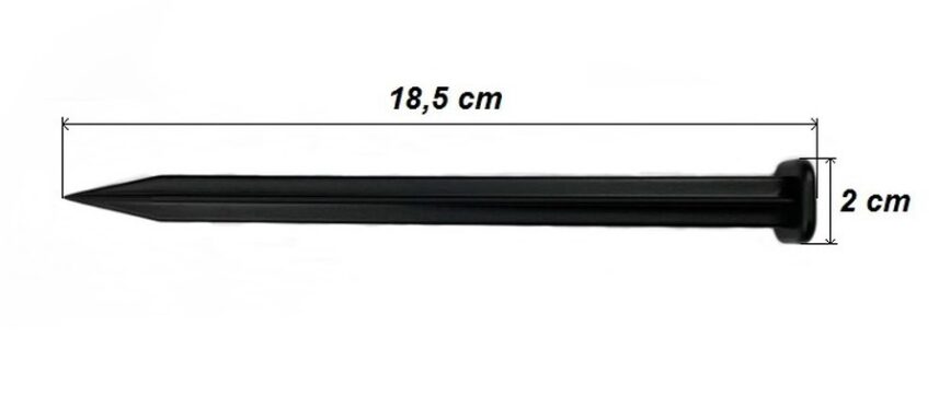 The anchor is a mounting element made from durable recycled plastic. It has the form of a rigid pin with a profiled compression head that ensures stable fastening of edging and garden materials.