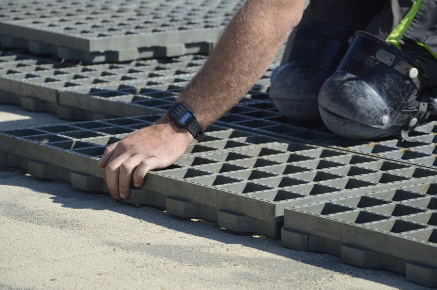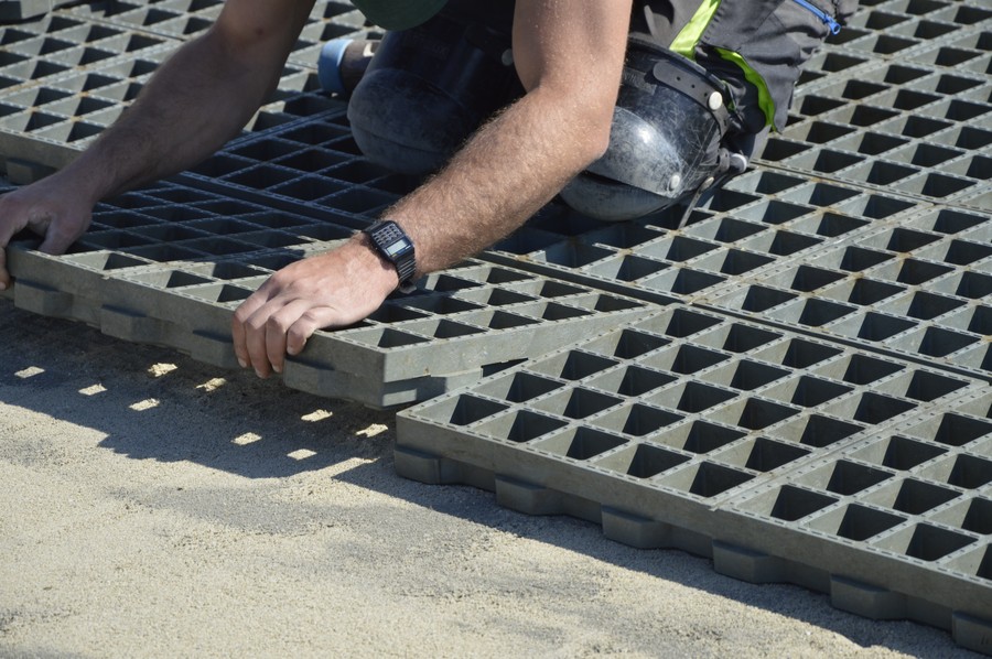Moduły o wymiarach 80 cm x 40 cm pozwalają na szybki i efektywny montaż przy ograniczonej liczbie łączeń, co bezpośrednio przekłada się na lepszą stabilizację całego podłoża.