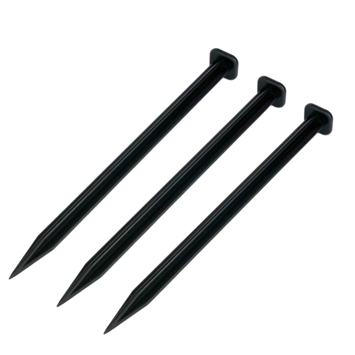 Powierzchnia kotwy została ukształtowana tak, aby zwiększyć przyczepność do gruntu i zapobiegać jej przemieszczaniu się po montażu. Materiał odporny na promieniowanie UV, wilgoć, zmiany temperatur oraz środki chemiczne stosowane w ogrodnictwie gwarantuje trwałość i niezawodność podczas użytkowania.