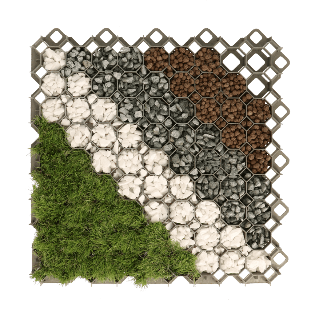 Ekokrata MULTIGRAVEL jest zbudowana z otwartych komórek heksagonalnych, które tworzą samonośny ruszt stabilizujący i równomiernie wzmacniający nawierzchnię.