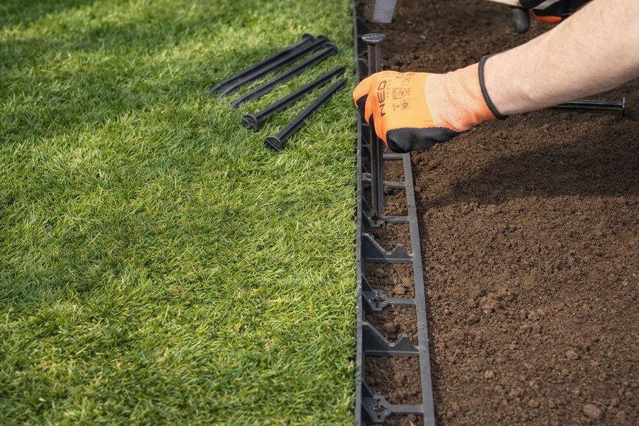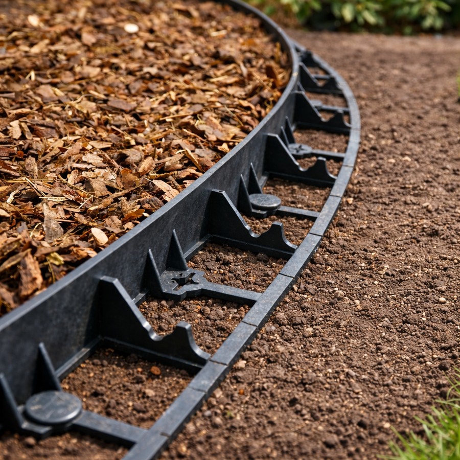 Zapewnia stabilne utrzymanie materiału w obrębie wyznaczonej przestrzeni oraz estetyczne wykończenie kompozycji ogrodowych i terenowych.