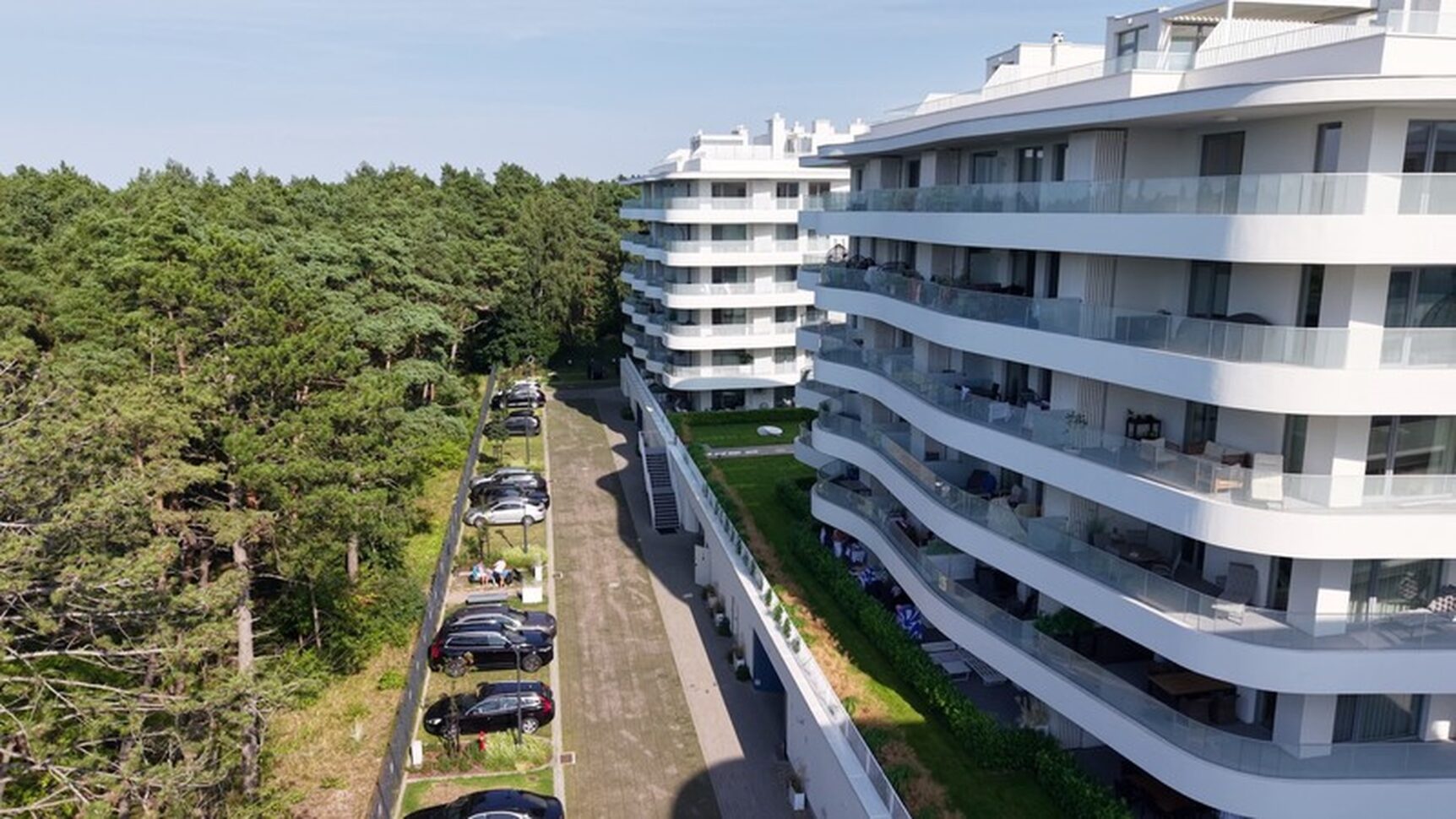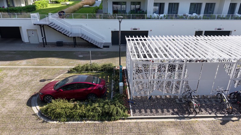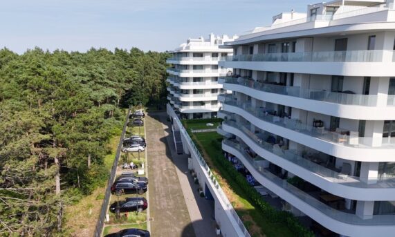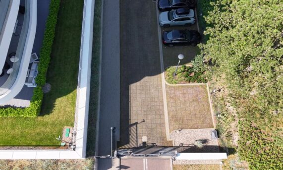 Zastosowany system gwarantuje błyskawiczny drenaż wód opadowych bezpośrednio do gruntu, co jest kluczowe dla ochrony lokalnego ekosystemu. Wypełnienie komórek kruszywem pozwoliło uzyskać estetyczną, równą płaszczyznę, która płynnie komponuje się z nowoczesną architekturą apartamentów i naturalnym otoczeniem. Wybór kratek Natan Plast zapewnił trwałość utwardzenia przy zachowaniu pełnej retencji wody na całym obszarze inwestycji.