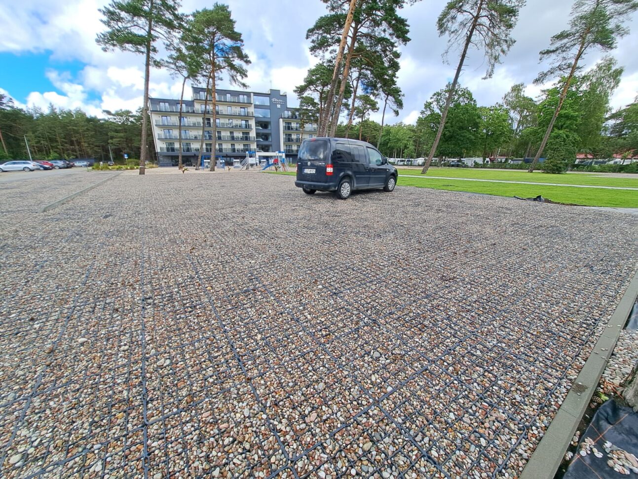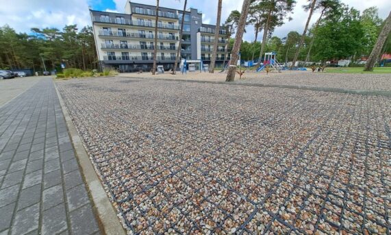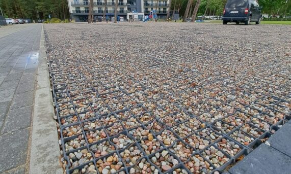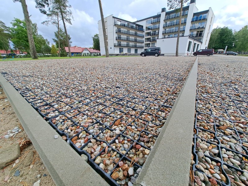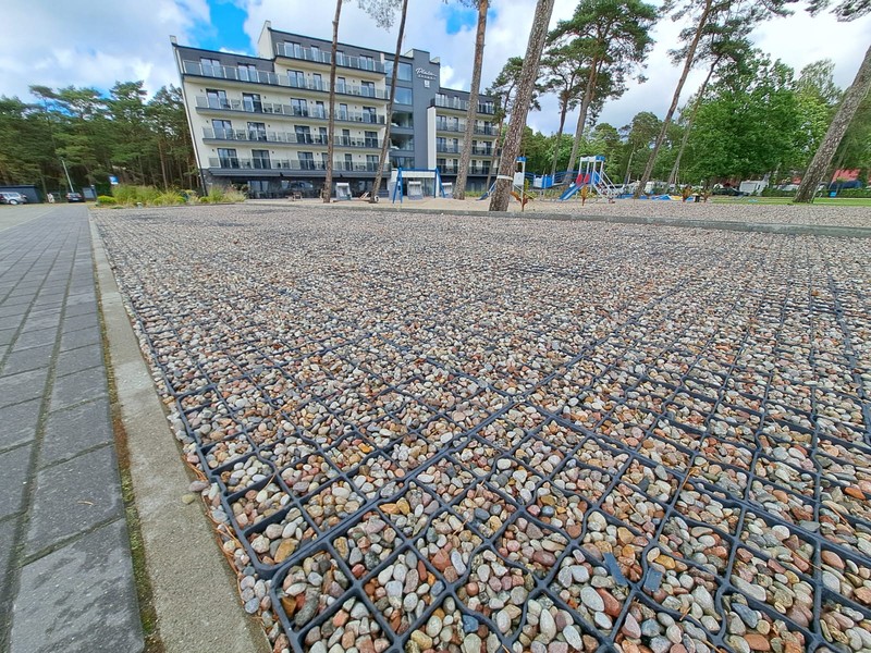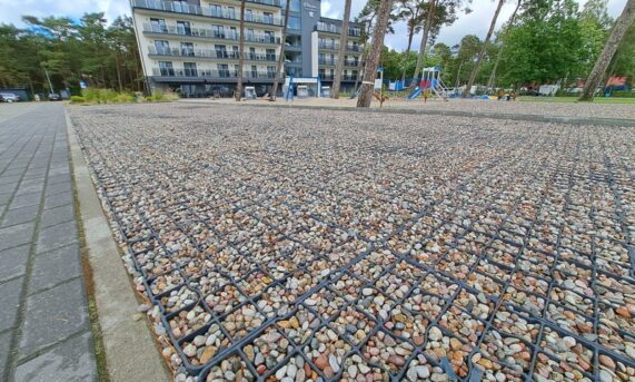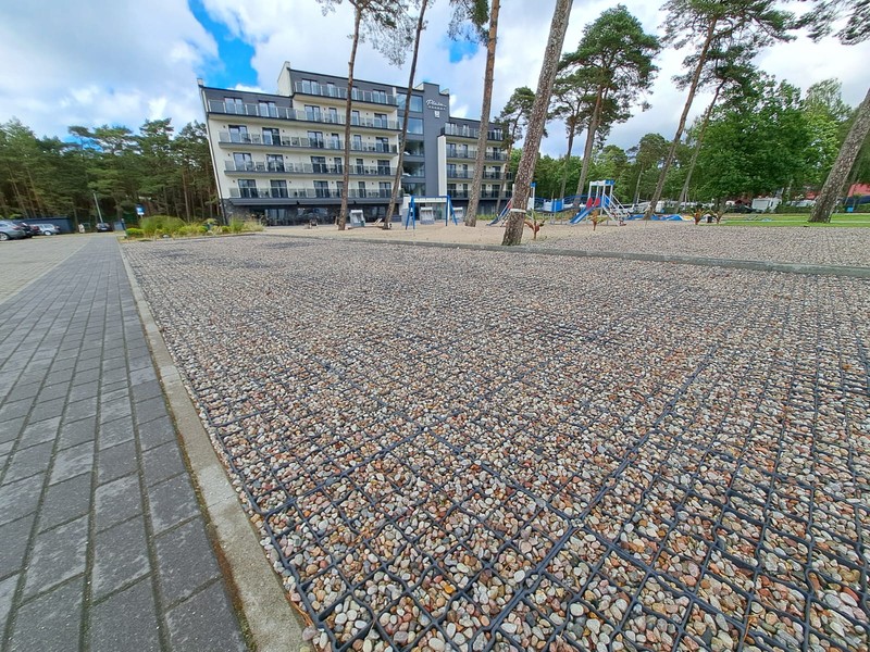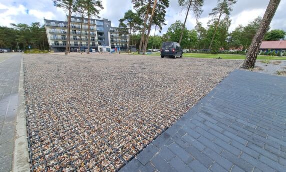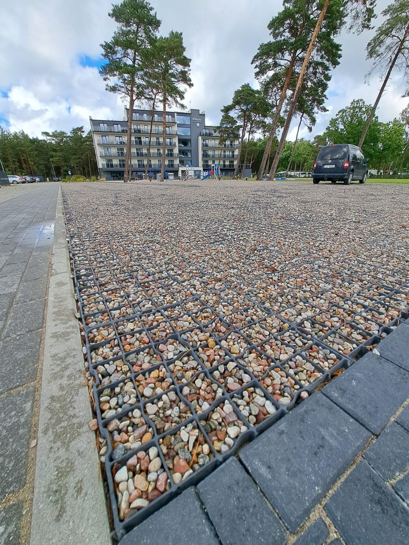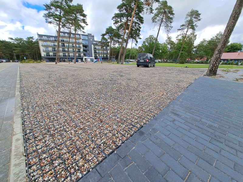 Zastosowanie tego rozwiązania pozwoliło na stworzenie stabilnej i wytrzymałej infrastruktury postojowej, która idealnie wpisuje się w nadmorski krajobraz. Dzięki optymalnym parametrom modelu N40, nawierzchnia zyskała wysoką odporność na nacisk kół oraz ochronę przed powstawaniem kolein, co jest kluczowe przy intensywnym użytkowaniu przez pojazdy osobowe.