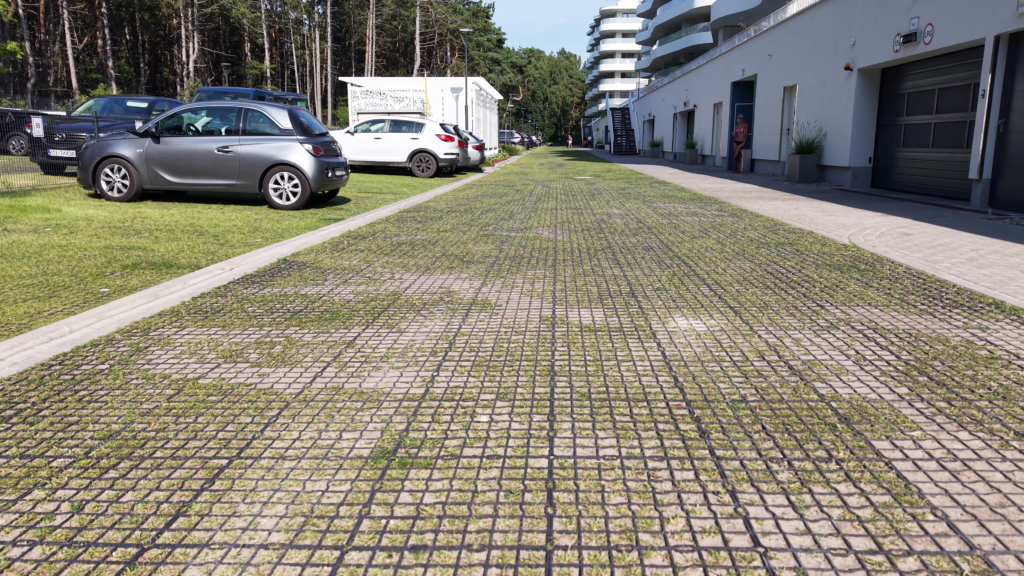 Budowa drogi wewnętrznej lub placu manewrowego to inwestycja, która musi przetrwać próbę czasu i obciążeń. Tradycyjne nawierzchnie nieprzepuszczalne generują wysokie koszty związane z odprowadzaniem wody deszczowej (podatki od deszczu, systemy drenażowe). Rozwiązania Natan Plast eliminują te problemy, oferując nawierzchnię w pełni przepuszczalną, a jednocześnie ekstremalnie wytrzymałą.