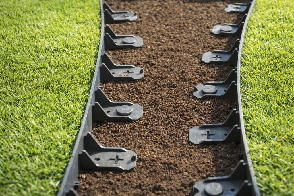 - Wiele wysokości: Oferujemy modele o różnych wysokościach (np. 45 mm, 58 mm, 78 mm), co pozwala na separację nawierzchni o różnej grubości – od trawnika po ciężkie kruszywo.