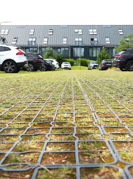 Tradycyjny trawnik w miejscach o dużym natężeniu ruchu szybko zmienia się w błoto lub wyschnięte klepisko. Wykorzystując nasze ekokraty, tworzysz „szkielet”, który przejmuje obciążenia, chroniąc korzenie roślin przed zniszczeniem.